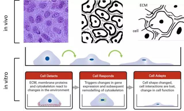 細胞在平面上生長是人為的和不自然的,因為這與細胞能夠以最佳狀態進行旺盛生長的體內環境并不相同。因此,傳統的2D單層細胞培養物很難恰當地反映出細胞的體內生長環境,進而可能造成細胞結構和組織功能的缺失。