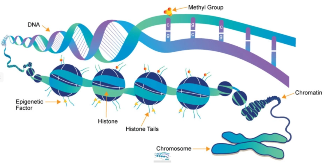 組蛋白是組成真核生物染色質的基本結構,因富含精氨酸和賴氨酸等堿性氨基酸而呈堿性,與酸性的DNA緊密結合。而組蛋白修飾是指在相關酶系統的催化下,組蛋白的某些氨基酸(主要是精氨酸或賴氨酸)上會發生乙酰化、甲基化、磷酸化、腺苷酸化、泛素化、類泛素化、ADP核糖基化等的修飾過程。